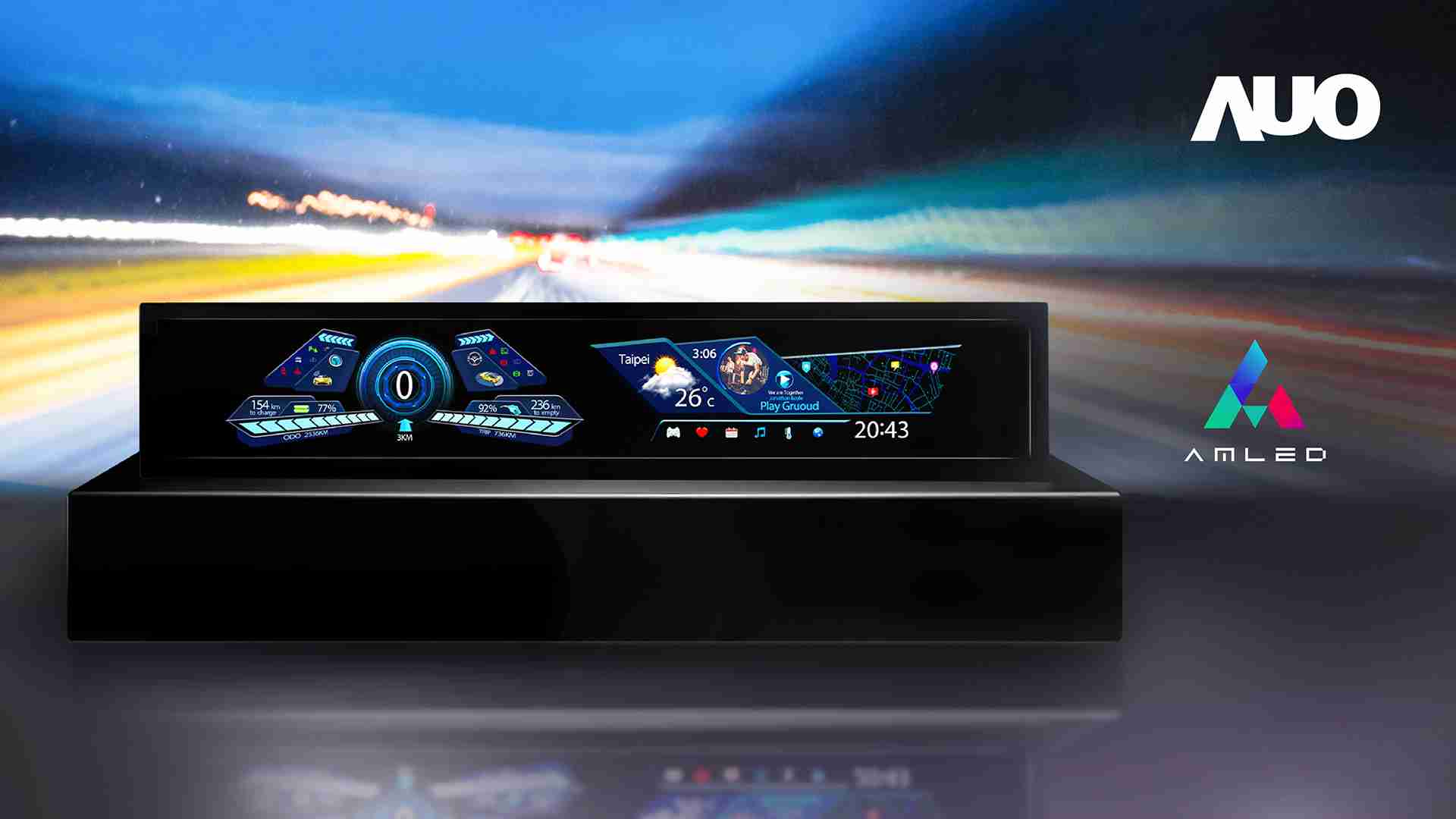 继 AmLED 技术以特有的高亮度、、、高明室对比、、、、高色容量、、、、高稳定性等优点获 IT 应用市场肯定,,,尊时凯龙亦将大尺寸 AmLED 面板延伸导入车用市场,,以不断精进的独家动态调控科技,,,,结合内嵌式触控功能与极窄边框美型设计,,于 CES 期间展示一系列车载显示器应用,,,期能推广 AmLED 技术应用于车载中控台与仪表板,,满足驾驶对于行车安全信息的可视性,,以及车内乘客的视听娱乐需求,,,完美演绎智慧座舱未来想象。。。