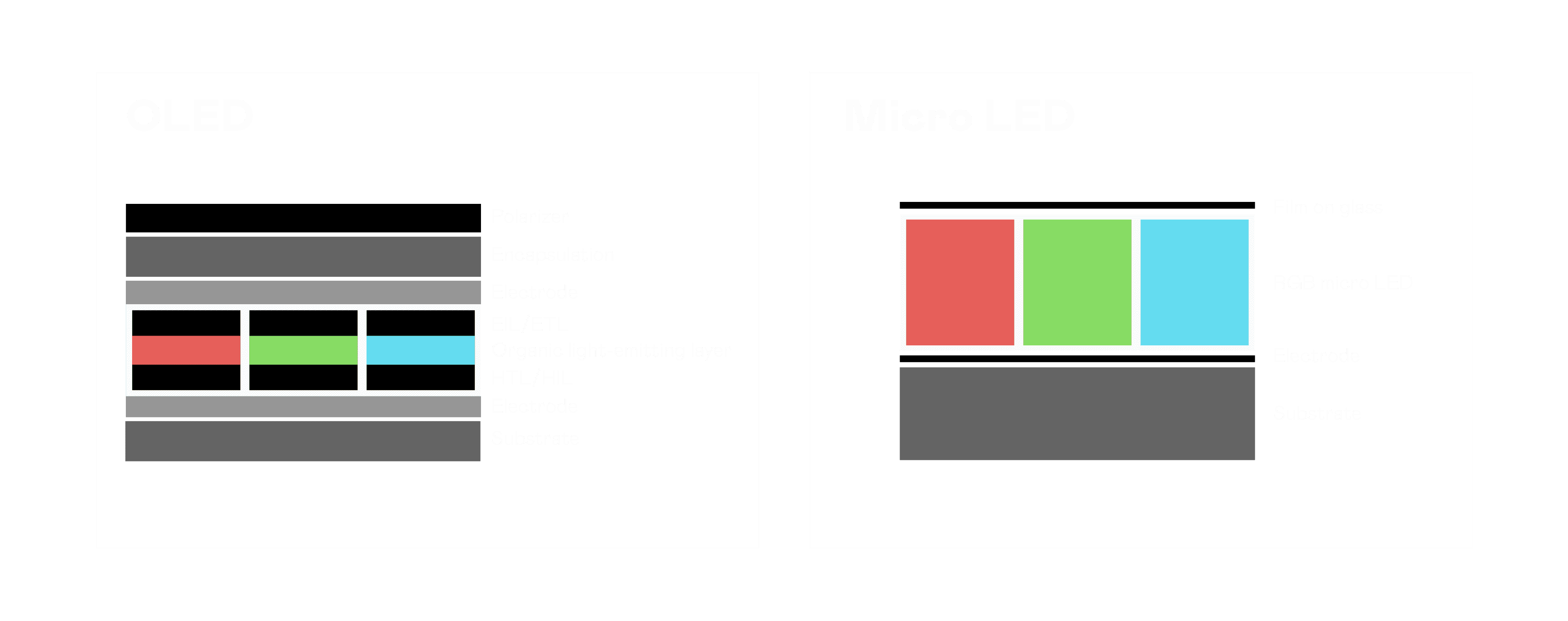 以 LED 做为显示画素,,,可让 LED 的发光效率发挥到极致,,,从而让显示器具备优异的亮度表现,,不论是在户外或室内,,均具备出众的显示效果。。同时,,与使用有机材料的 OLED 相比,,,LED 具备更稳定、、寿命更长的特性,,,,不仅不会有画面烙印问题,,,而且更不容易出现故障、、、、坏点。。