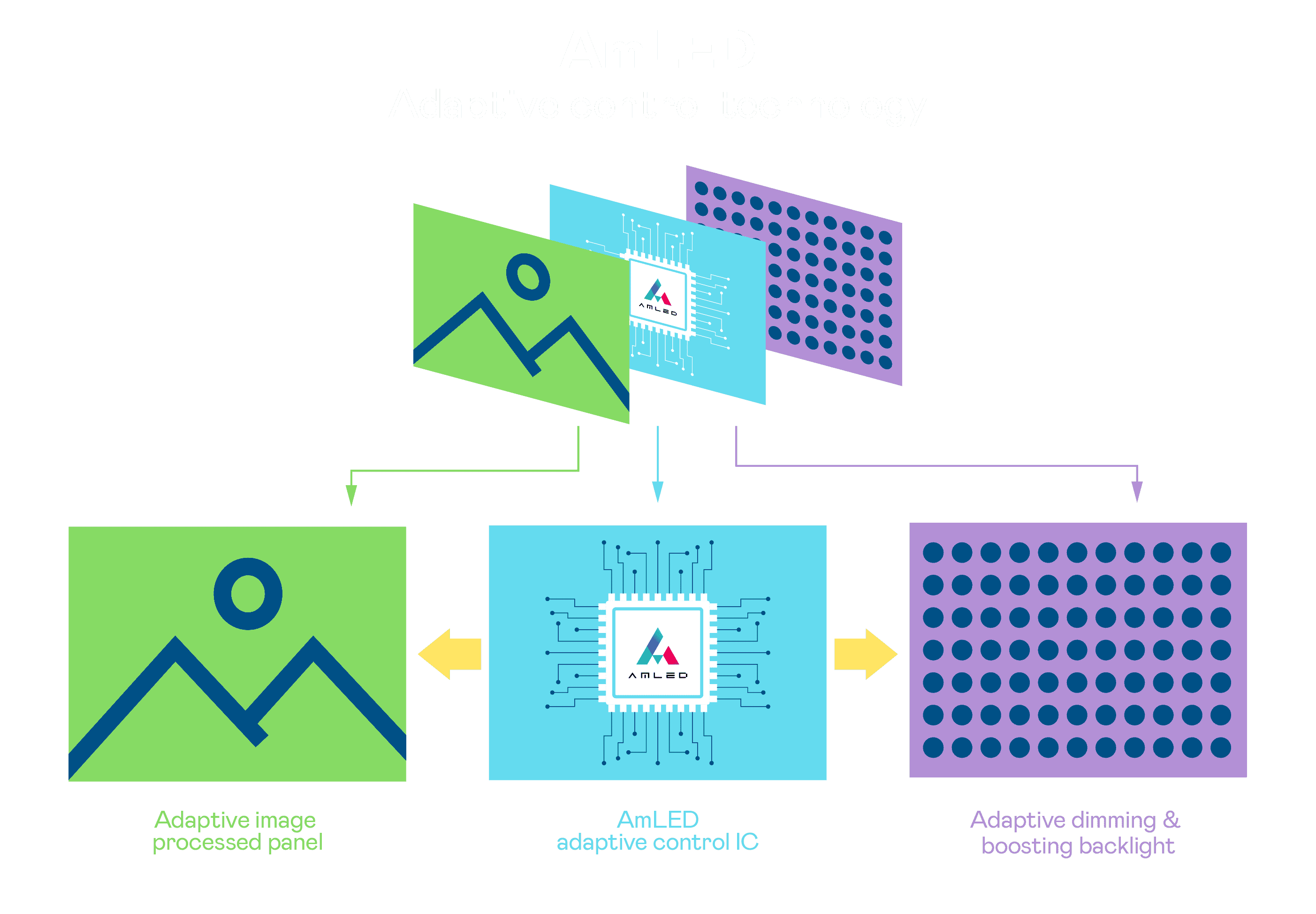 透过动态影像处理和 Mini LED 背光模组的动态对比及峰值亮度调变,,AmLED 显示技术精准细致的局部调光效果达到超过 1,000 nits 的超高亮度表现,,,亮部更明亮、、、、暗处更深邃,,,呈现真实黑色中的亮度以及平滑灰阶,,打造出具层次分明的精致光影细节。。。。