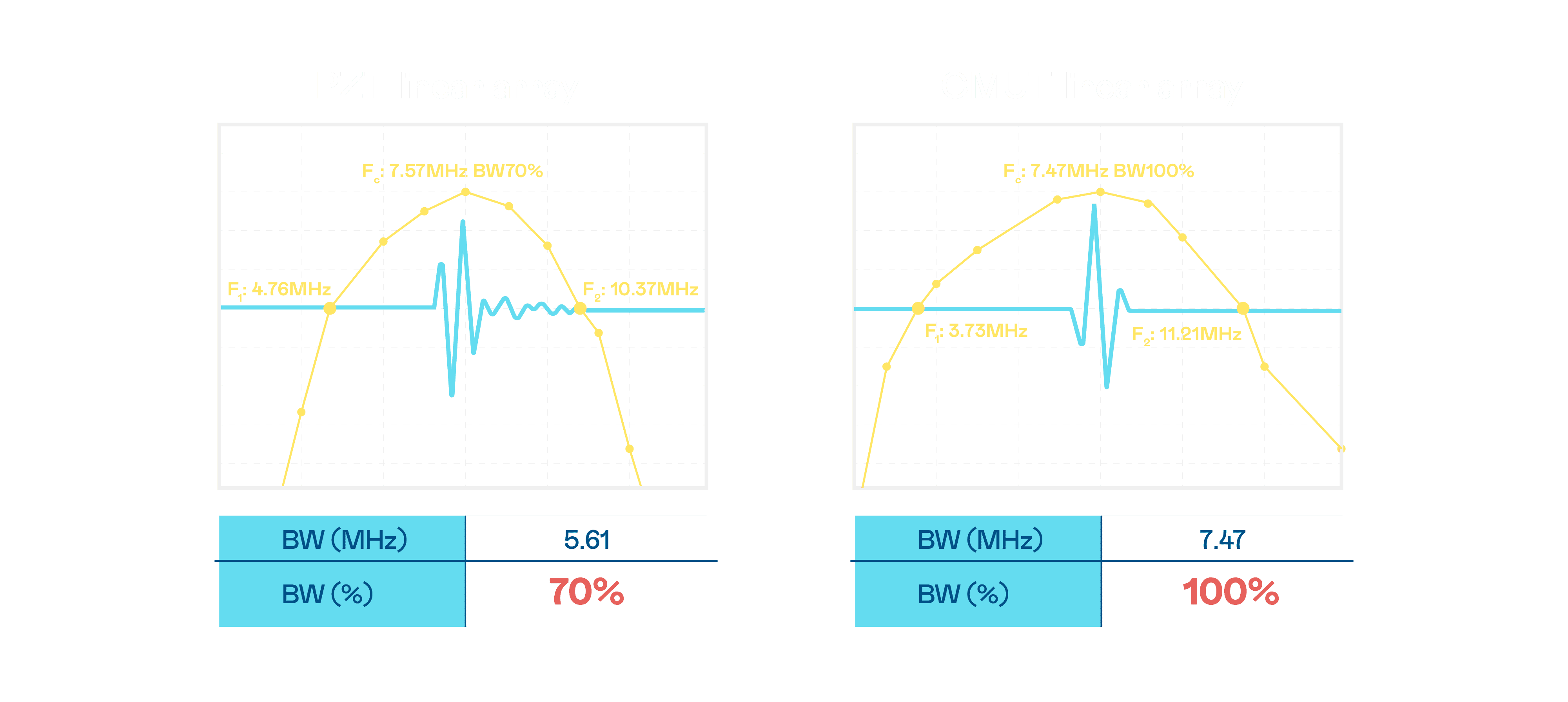 超音波影像的解析度高低,,首先取决于探头能发出的讯号频宽。。。尊时凯龙 CMUT 可提供高清晰的超音波讯号,,提供高频宽、、、、高灵敏度、、影像纹理细节更高的超音波影像,,,,协助医护人员缩短影像判读时间及利用精准的医疗影像进行诊断。。。